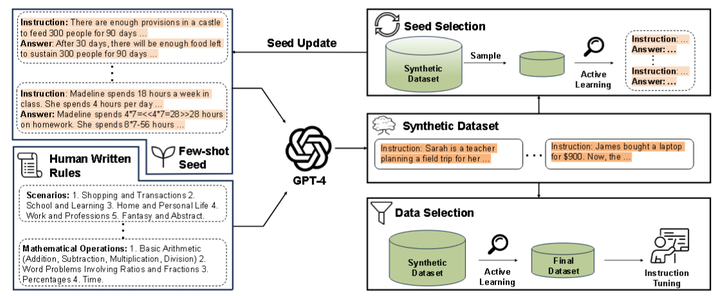 Instruction tuning has demonstrated its potential in aligning large language models (LLMs) to downstream domains; however, this approach heavily relies on extensive, high-quality datasets for fine-tuning through instructions. The construction of a dataset tailored to the target domain becomes crucial, especially when the datasets in downstream domains are scarce. In response, we introduce DiverSeed, a framework based on LLMs for generating datasets specific to target domains. DiverSeed can generate large-scale, diversified datasets based on several seeds from the target domain. Specifically, the pattern of the generated data aligns with that of the reference seed data, thereby reducing the presence of noisy data and elevating the overall quality of the final dataset. Meanwhile, to augment the efficiency of data utilization in the training process and diminish the redundancy in our constructed dataset, we employ seed update and data selection approaches based on active learning strategies. Finally, building upon the DiverSeed framework, we leveraged LLMs to generate two separate high-quality datasets, specifically tailored for mathematical and commonsense reasoning domains. We perform generated data by DiverSeed to finetune different LLMs, and extensive experiments demonstrate that our generated data significantly outperform the gold datasets and other data generation methods. Besides, a comprehensive series of experiments and analyses have established that both the seed update and data selection strategies we proposed effectively enhance the diversity of the generated data, thereby improving the efficacy of model training.